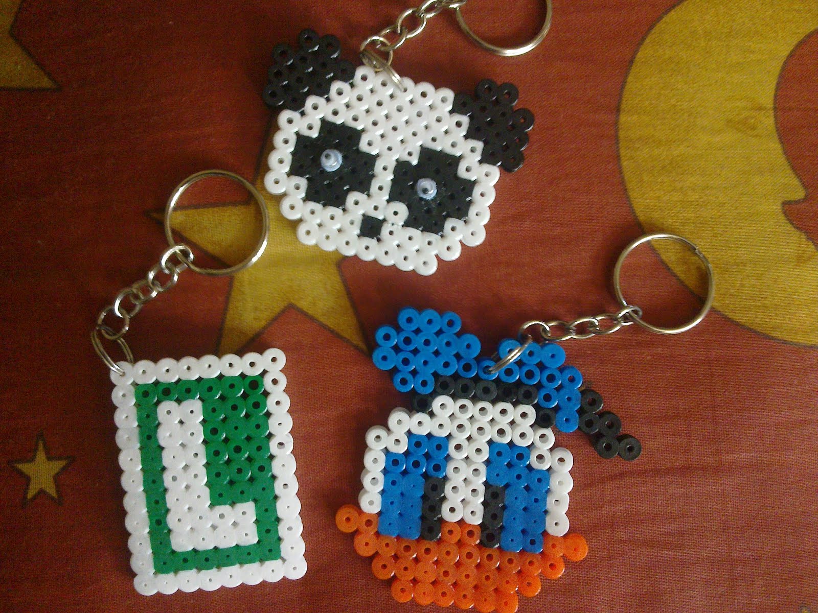 chulisimos llaveros de Hama beads.....osito panda con ojos movibles y donald (3euros/unidad), L de autoescuela (1euro), gastos de envio 1euro